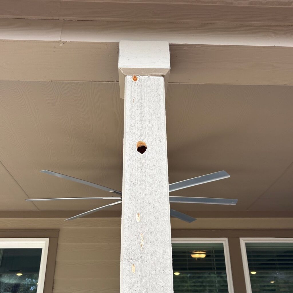 If a woodpecker has excavated a deep hole, we don’t just cover it. We repair the underlying wood to ensure that moisture and rot don’t continue to degrade the column from the inside out.